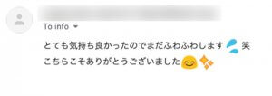 ↓お別れしてからもありがたい御礼メールをいただきました。↓